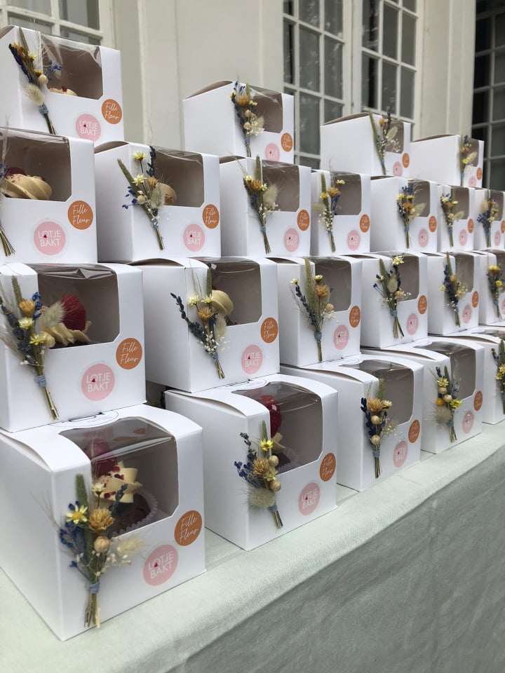 Graag een cadeau meegeven aan jouw gasten? Alles kan per stuk ingepakt worden, met jouw logo of kleurenpalet op!