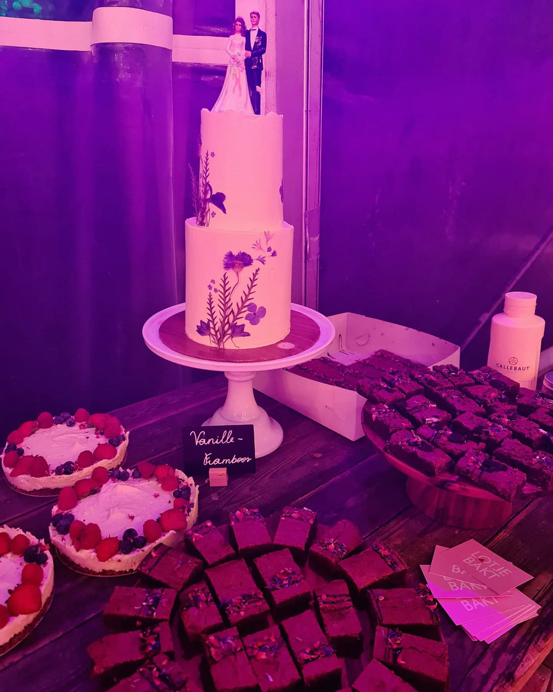 Een layercake met klein gebak naar keuze, voor ieder wat wils en in het thema van jouw event!